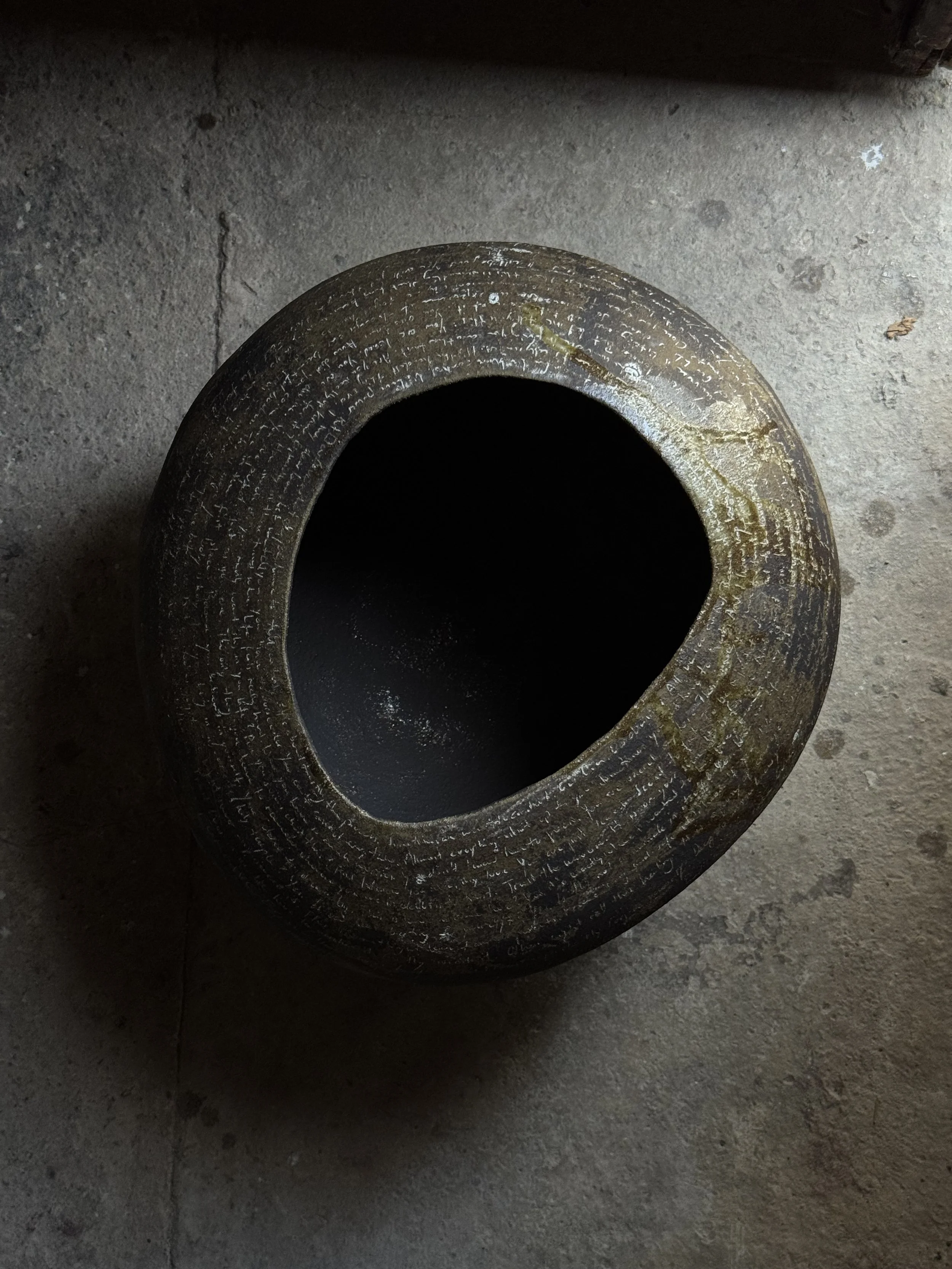 Writing on a vessel, however, is something else entirely. It transforms the act of writing from private reflection into a physical, permanent mark—embedding the words directly into the object that holds them.